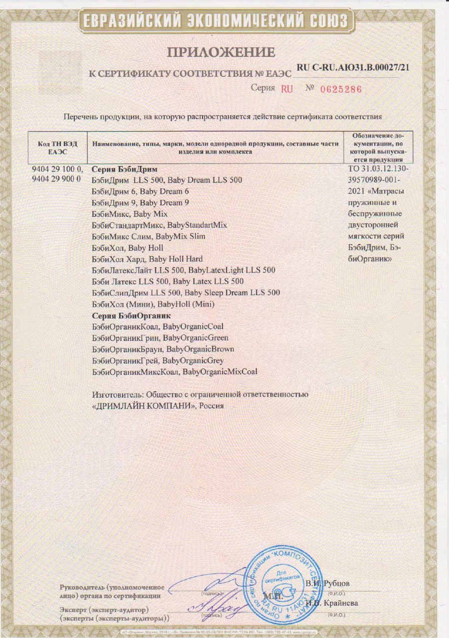 Состав детского матраса